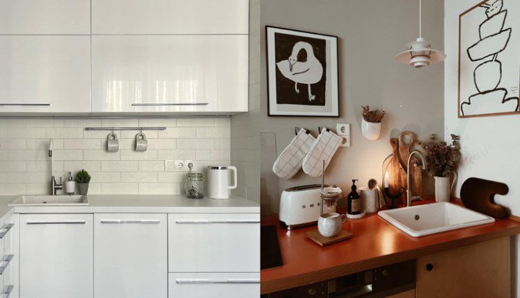 Если вы хотите оформить зону вокруг раковины эстетично, удобно и без визуального шума, перелейте моющее средство в диспенсер, а бутылочку отправьте на фартук, как сделала хозяйка этой кухни. Так ничто не будет мешать вам на столешнице, а если места совсем мало, на стену можно повесить и губку.