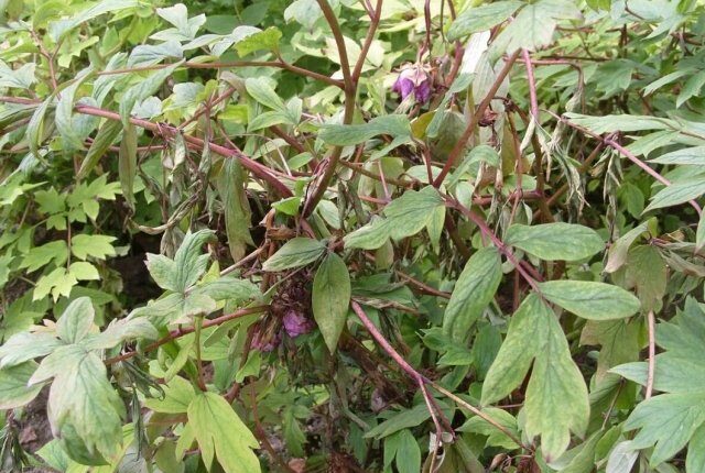 Древовидные пионы могут страдать и от поселившейся в почве нематоды. Эти круглые черви-паразиты проникают в корневище и не только сами поедают ткани, но и провоцируют заражение растений бактериальными, грибковыми и вирусными болезнями. Листья на кустах, пораженных нематодой, мельчают, побеги истончаются, цветение прекращается. При выкопке пиона можно обнаружить характерные вздутия-галлы и самих червей в корнях.