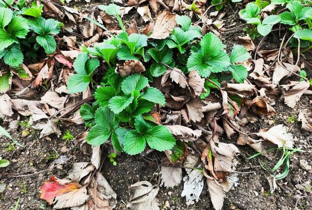 Если вы решили использовать компост (не забудьте, что весной можно вносить только зрелый), просто разложите его на грядке вокруг каждого клубничного куста. Органика одновременно послужит и удобрением, и мульчей.
