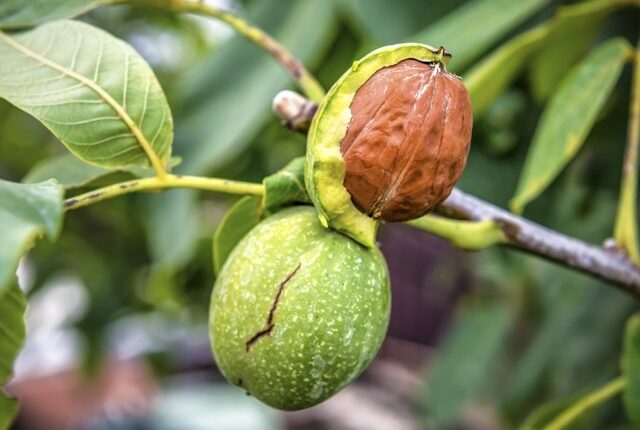 Грецкий орех способен «отвоевать» себе большую территорию – поэтому его обычно сажают в дальнем углу сада, где он не будет никому мешать. Дело в том, что корни, листья и другие части грецкого ореха содержат органическое соединение юглон, которое обладает ярко выраженными аллелопатическими свойствами. Поэтому растения, чувствительные к юглону, чахнут вблизи ореха.
