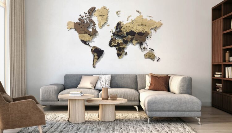 Деревянная многоуровневая карта мира на стене — это не просто декор, это искусство и экологический декларат. Она сочетает в себе стиль, оригинальность и природную красоту, делая интерьер уникальным и привлекательным. Будучи символом путешествий и приключений, такая карта напоминает о важности сохранения природы и экологического баланса в современном мире.