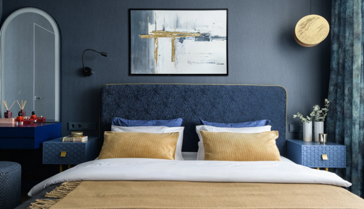 Самый актуальный цвет стен для спальни в 2024 году глубокий синий.