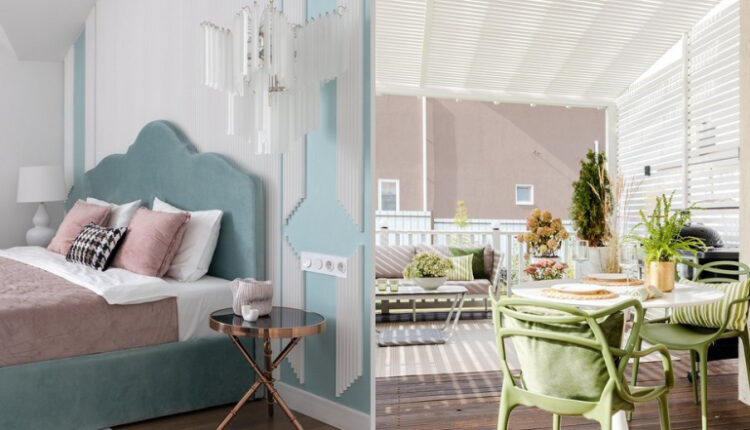 Для мастер-спальни Эльза выбрала бирюзовый, который любят и она, и супруг. Бирюзовый использован деликатно, как акцент. Основа же спальни чистый белый цвет.