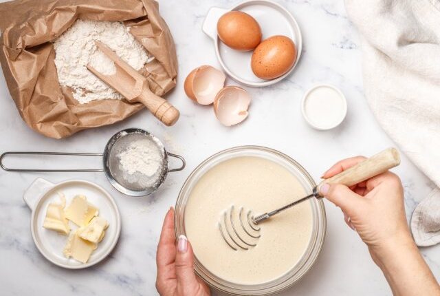 Ускорить приготовление теста и быстрее сделать его однородным поможет одна хитрость, к слову, известная многим хозяйкам. Постепенно вводить следует именно жидкость в муку, а не наоборот. Придать блинам воздушность поможет предварительное просеивание муки через сито или специальную кружку.