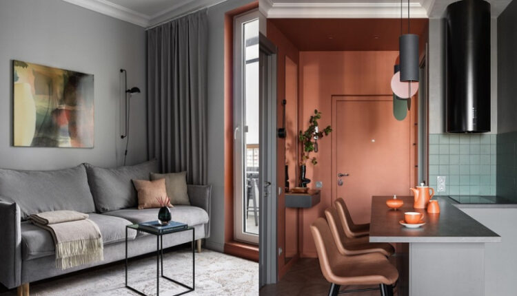 Дизайнеру удалось вписать зону гостиной в небольшую квартиру, сохранить спальню, а также найти место для гардеробной. Получилась почти двушка на маленькой площади.