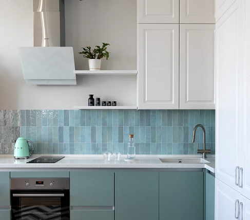 Еще один способ освежить и украсить зону готовки поставить на рабочую поверхность небольшое кашпо с комнатным растением. Горшок может быть в тон основной палитре, чтобы пространство выглядело цельно, или контрастным. Для размещения на кухне выбирайте растения, которые нормально переносят высокие температуры и влажность и будут комфортно себя чувствовать рядом с раковиной или плитой.