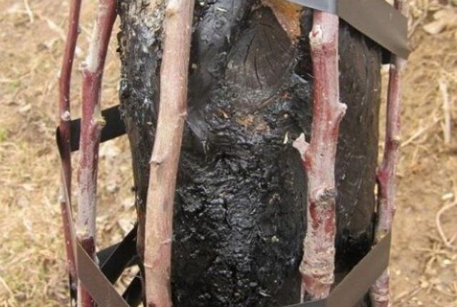 Если мыши или зайцы погрызли кору незначительно, места повреждений нужно замазать пастой РанНет, БлагоСад или Живица.