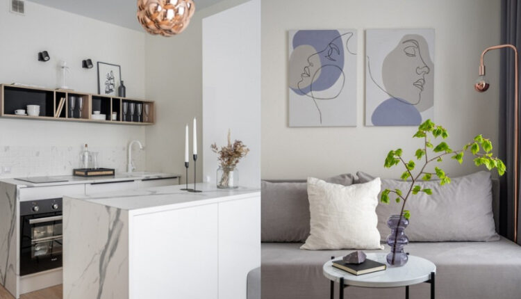 При разработке проекта квартиры малого метража пришлось прибегать к хитростям и находить бюджетные варианты для решения практических и эстетических задач, в том числе с помощью интересных декоративных деталей. Они помогли сделать интерьер более выразительным и стильным.