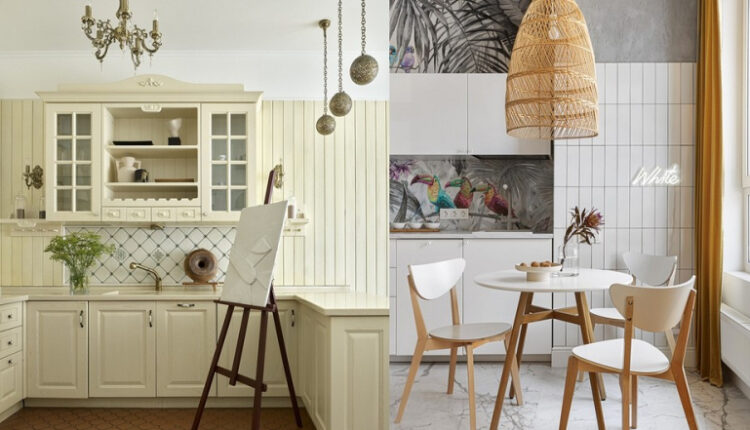 В квартире дизайнера Екатерины Воротниковой создана атмосфера загородного дома. На стенах вагонка, много уютного текстиля, натуральные фактуры и уютные текстуры. Вагонка уложена на стенах кухни и даже на фартуке! Но для практичности зоны наибольшей «опасности» над варочной панелью и мойкой выложены плиткой. Эти фрагменты выглядят как панно и не только выполняют свою практическую функцию, но и украшают пространство, добавляют ему шарма.